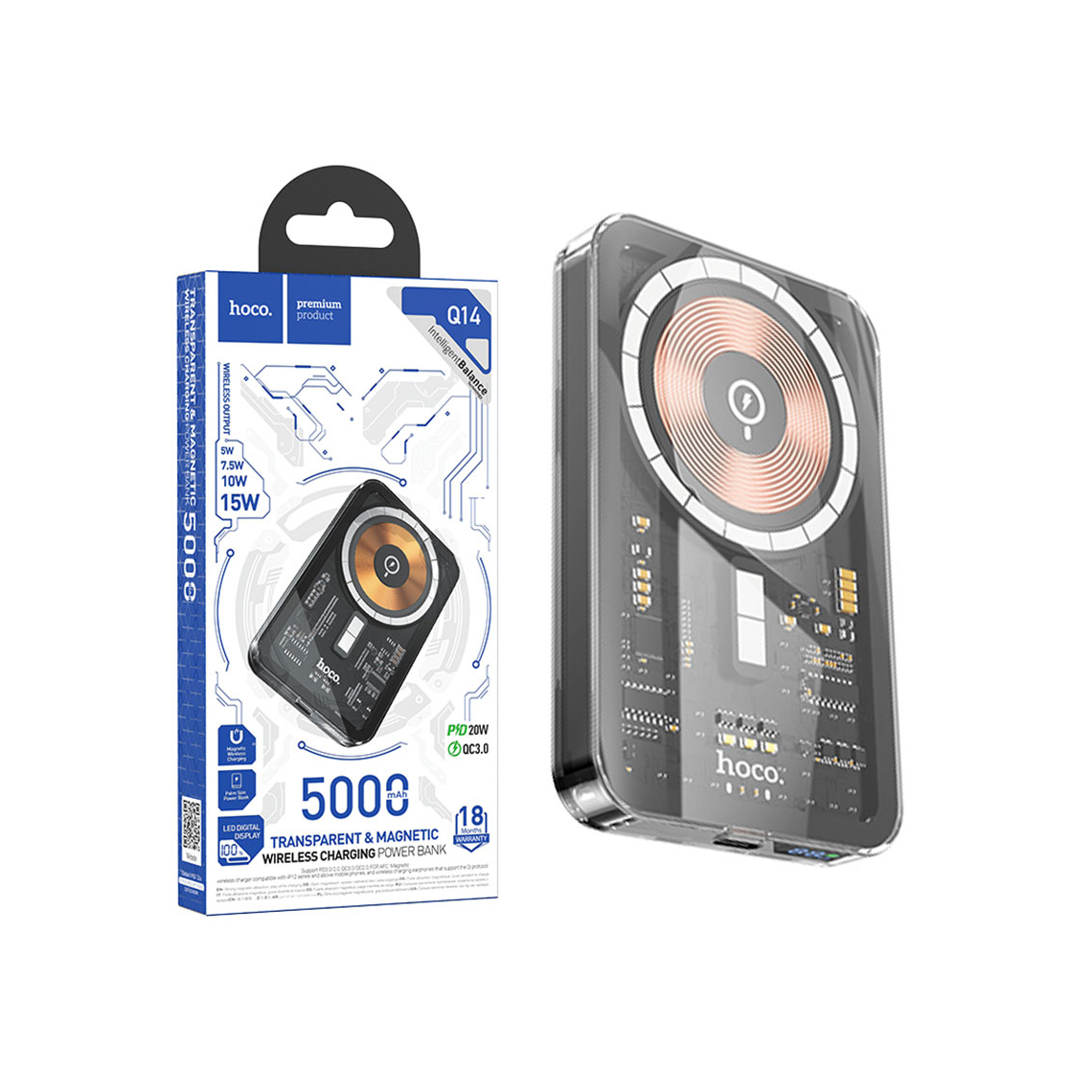 Bucură-te de încărcare rapidă și fără fir cu bateria externă wireless Hoco Q14! Această baterie compactă și elegantă de 5.000mAh îți oferă o soluție de alimentare portabilă pentru smartphone-ul tău, oriunde te-ai afla. Dispune de tehnologie de încărcare wireless compatibilă cu dispozitivele care suportă încărcare wireless, dar și de un port USB-C Power Delivery (PD) care oferă încărcare rapidă dispozitivelor compatibile. Cu o capacitate de 5V/2A, Hoco Q14 asigură o încărcare eficientă și sigură. Magnetul integrat permite o fixare sigură pe dispozitivele compatibile MagSafe, oferind o experiență de încărcare extrem de convenabilă și fără griji că telefonul ar putea cădea. Display-ul LED încorporat îți arată nivelul de încărcare rămas, astfel încât să știi mereu când trebuie reîncărcată bateria. Designul său negru elegant și dimensiunile compacte fac din Hoco Q14 un accesoriu perfect pentru călătorii, naveta zilnică sau utilizarea acasă. Nu mai rămâne niciodată fără baterie! Alege bateria externă wireless Hoco Q14 pentru o alimentare sigură, rapidă și comodă a dispozitivelor tale. Tehnologia PD (Power Delivery) permite incarcarea rapida a dispozitivelor compatibile prin portul USB-C. Magnetul puternic garanteaza o fixare sigura, prevenind alunecarea accidentala. Display-ul LED indica precis nivelul de incarcare al bateriei, oferindu-ti control total. Bateria externa Hoco Q14 este solutia ideala pentru a-ti mentine dispozitivele incarcate in orice moment si in orice loc. Uita de grija bateriei descarcate si profita la maxim de dispozitivele tale mobile. Dimensiunile reduse si greutatea mica o fac usor de transportat in geanta, rucsac sau chiar in buzunar. Fabricata din materiale de inalta calitate, bateria Hoco Q14 asigura durabilitate si fiabilitate pe termen lung. Incarca-ti telefonul, tableta sau alte dispozitive compatibile cu incredere si confort!