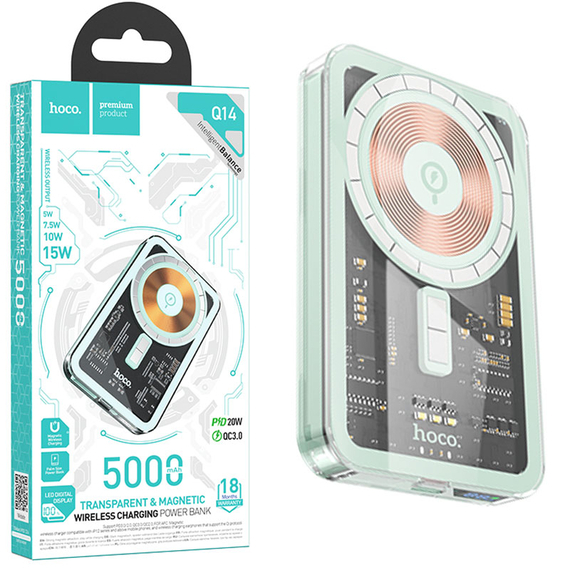 Descoperă libertatea încărcării wireless cu bateria externă Hoco Q14, un accesoriu indispensabil pentru dispozitivele tale mobile! Această baterie compactă și elegantă, de culoare albastră, integrează tehnologia de încărcare wireless pentru a-ți alimenta telefonul sau alte dispozitive compatibile, fără a mai fi nevoie de cabluri. Cu o capacitate de 5.000mAh, Hoco Q14 oferă suficientă energie pentru a-ți încărca complet telefonul de mai multe ori, asigurându-te că rămâi conectat pe tot parcursul zilei. Bateria dispune de un port USB-C PD (Power Delivery) care suportă încărcare rapidă la 5V/2A, permițându-ți să încarci rapid și eficient dispozitivele compatibile. Magnetul integrat asigură o fixare sigură și stabilă pe telefoanele compatibile cu încărcare MagSafe, oferind o experiență de încărcare wireless optimă. Designul modern este completat de un display LED intuitiv, care îți indică nivelul bateriei în timp real, astfel încât să știi întotdeauna când trebuie să o reîncarci. Dimensiunile reduse și greutatea ușoară o fac ușor de transportat în geantă sau buzunar, fiind partenerul ideal în călătorii, la birou sau în timpul activităților zilnice. Indiferent dacă ești un utilizator activ al smartphone-ului, un călător frecvent sau pur și simplu vrei să te asiguri că ai întotdeauna o sursă de energie la îndemână, bateria externă wireless Hoco Q14 este alegerea perfectă. Beneficiază de încărcare rapidă, wireless și o fixare magnetică sigură, totul într-un design compact și elegant. Alege Hoco Q14 pentru o experiență de încărcare fără griji!