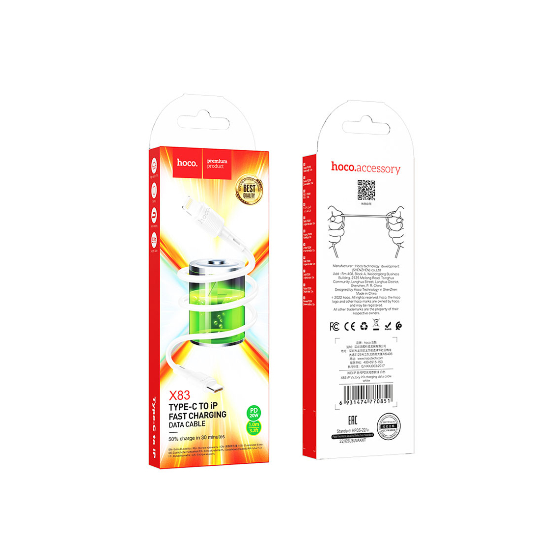 Experimentează încărcare rapidă și transfer de date eficient cu Cablul de Date și Încărcare Hoco X83. Acest cablu USB-C la Lightning, de culoare albă, este compatibil cu tehnologiile Power Delivery (PD) 20W și Quick Charge (QC) 3.0, asigurând o încărcare rapidă și sigură a dispozitivelor tale Apple compatibile. Cu o lungime de 1 metru, oferă flexibilitate și confort în utilizare, fie că te afli acasă, la birou sau în deplasare. Construit din materiale de înaltă calitate, cablul Hoco X83 garantează durabilitate și rezistență în timp, protejând în același timp dispozitivele tale de supratensiune și supraîncălzire. Designul său elegant și minimalist se potrivește perfect cu estetica dispozitivelor Apple. Cablul suportă atât încărcarea rapidă, cât și transferul de date la viteze mari, permițându-ți să sincronizezi rapid fotografii, videoclipuri și alte fișiere importante. Compatibilitatea sa largă include iPhone-uri, iPad-uri și AirPods-uri cu port Lightning. Alege Hoco X83 pentru o experiență de încărcare superioară și transfer de date rapid și fiabil. Beneficiază de tehnologia de încărcare rapidă PD 20W pentru a-ți încărca iPhone-ul de la 0% la 50% în aproximativ 30 de minute (în funcție de modelul dispozitivului). De asemenea, tehnologia Quick Charge 3.0 asigură o încărcare optimizată și eficientă pentru dispozitivele compatibile. Investește într-un cablu de calitate care îți va simplifica viața și îți va proteja dispozitivele.