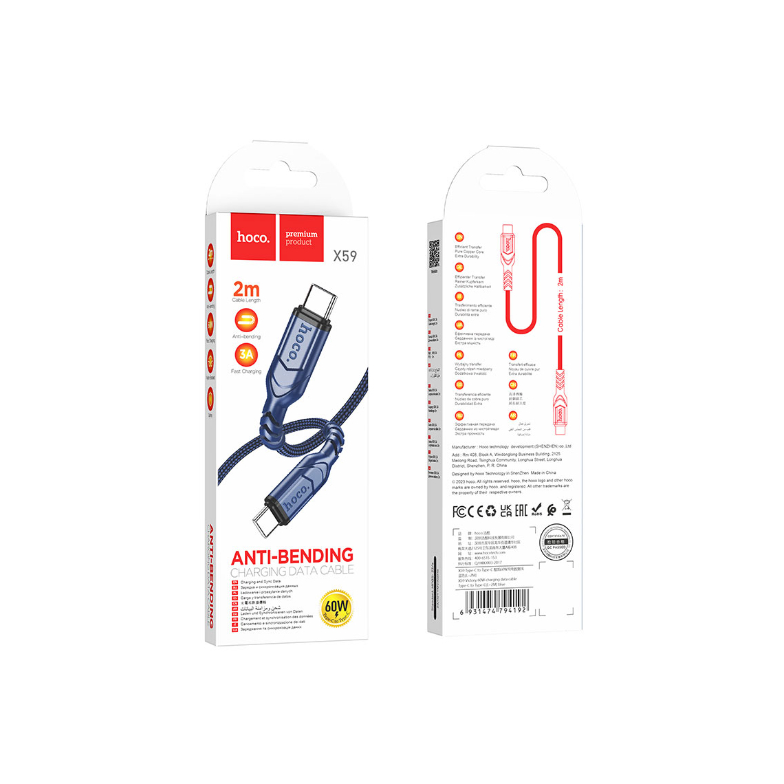 Experimentează o încărcare și transfer de date ultra-rapid cu cablul Hoco X59. Acest cablu robust și durabil, cu conector USB-C la ambele capete, este proiectat pentru a suporta Power Delivery (PD) de până la 60W și Quick Charge 3.0 (QC3.0), asigurând o încărcare eficientă și rapidă a smartphone-urilor, tabletelor, laptopurilor și a altor dispozitive compatibile. Lungimea de 2 metri oferă flexibilitate maximă, permițându-ți să utilizezi dispozitivele în timp ce se încarcă, fără a fi limitat de distanța față de priză. Fabricat din materiale de înaltă calitate, cablul Hoco X59 este rezistent la uzură, torsiune și rupere, asigurând o durată de viață lungă. Conectorii USB-C sunt construiți cu precizie pentru o conexiune sigură și stabilă, minimizând pierderile de energie și asigurând o transfer de date fiabil. Culoarea albastră vibrantă adaugă un plus de stil, făcându-l ușor de identificat în aglomerația de cabluri. Ideal pentru utilizare acasă, la birou sau în călătorii, cablul Hoco X59 este soluția perfectă pentru a-ți menține dispozitivele alimentate și conectate. Beneficiază de transfer de date de mare viteză pentru a sincroniza fișiere, fotografii și videoclipuri între dispozitivele tale. Datorită suportului PD60W, poți încărca rapid chiar și laptopuri compatibile cu USB-C, economisind timp prețios. Nu te mai confrunta cu cabluri fragile și incomode – alege durabilitatea și performanța oferite de cablul Hoco X59. Cablul suportă și standardul de încărcare rapidă QC3.0, compatibil cu o gamă largă de smartphone-uri Android. Structura internă a cablului este optimizată pentru a minimiza pierderile de energie și a asigura o încărcare stabilă și eficientă. Design-ul elegant și funcțional face din Hoco X59 un accesoriu indispensabil pentru orice utilizator de dispozitive USB-C. Investește într-un cablu de calitate care îți va simplifica viața și îți va oferi performanță pe termen lung.
