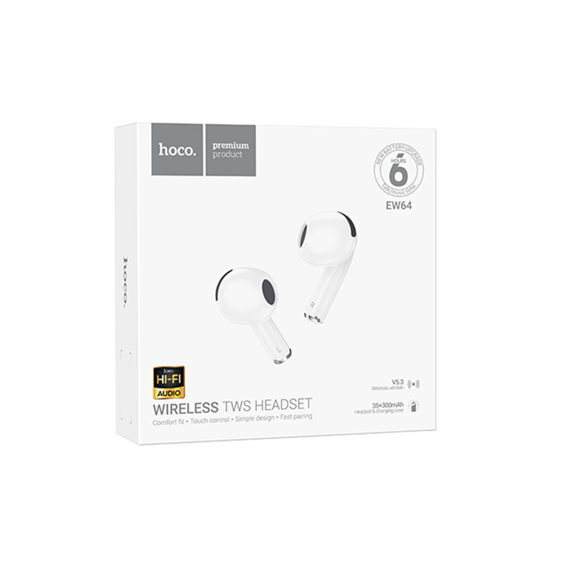 Accesorii Casti Wireless, Ear Buds, BT 5.3, 180h StandBy, 300mAh, Slide Tuning, White – Hoco EW64