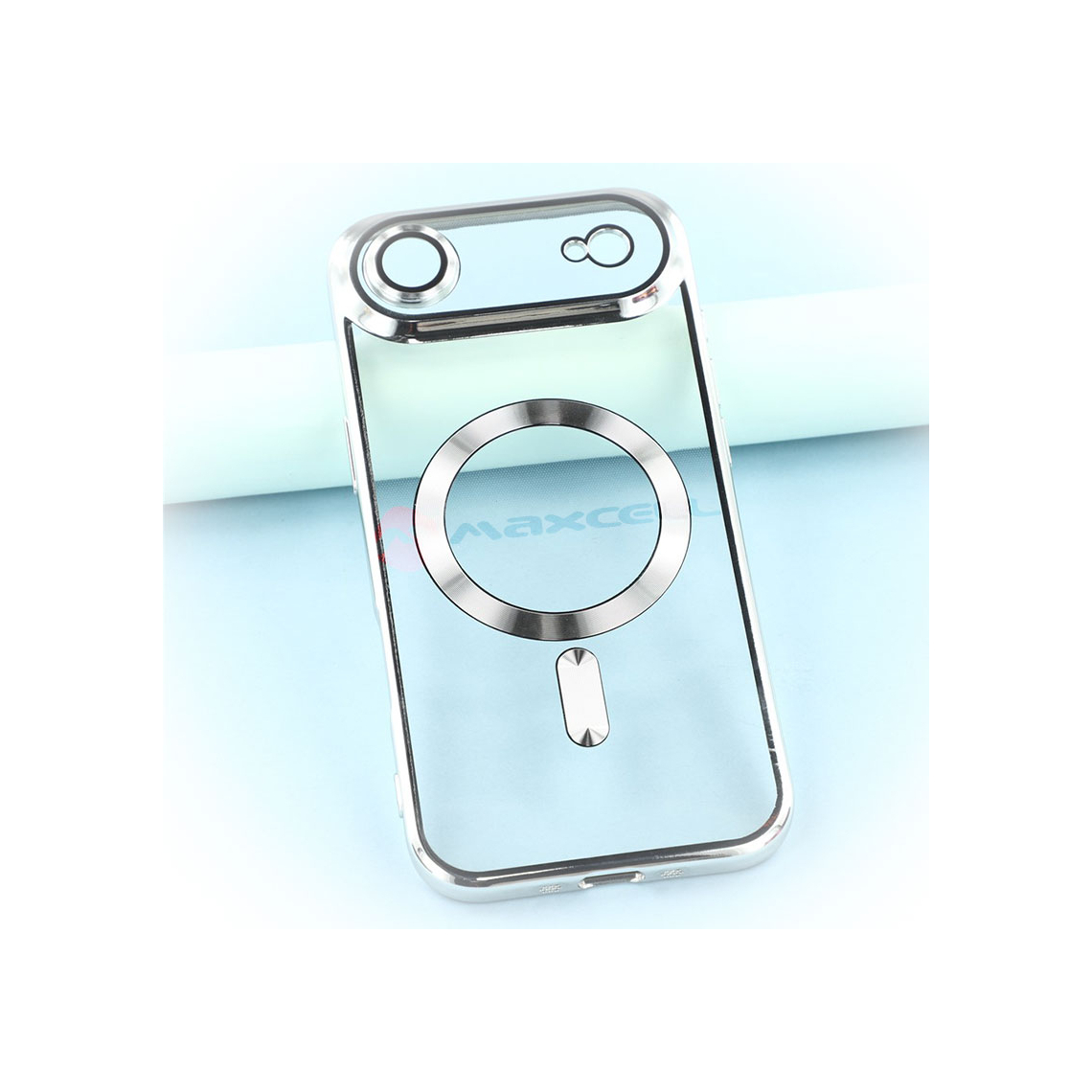Husă Plating iPhone 17 Air, MagCase, TPU transparent, ramă argintie. Protecție & stil, compatibilă MagSafe, acces facil porturi.